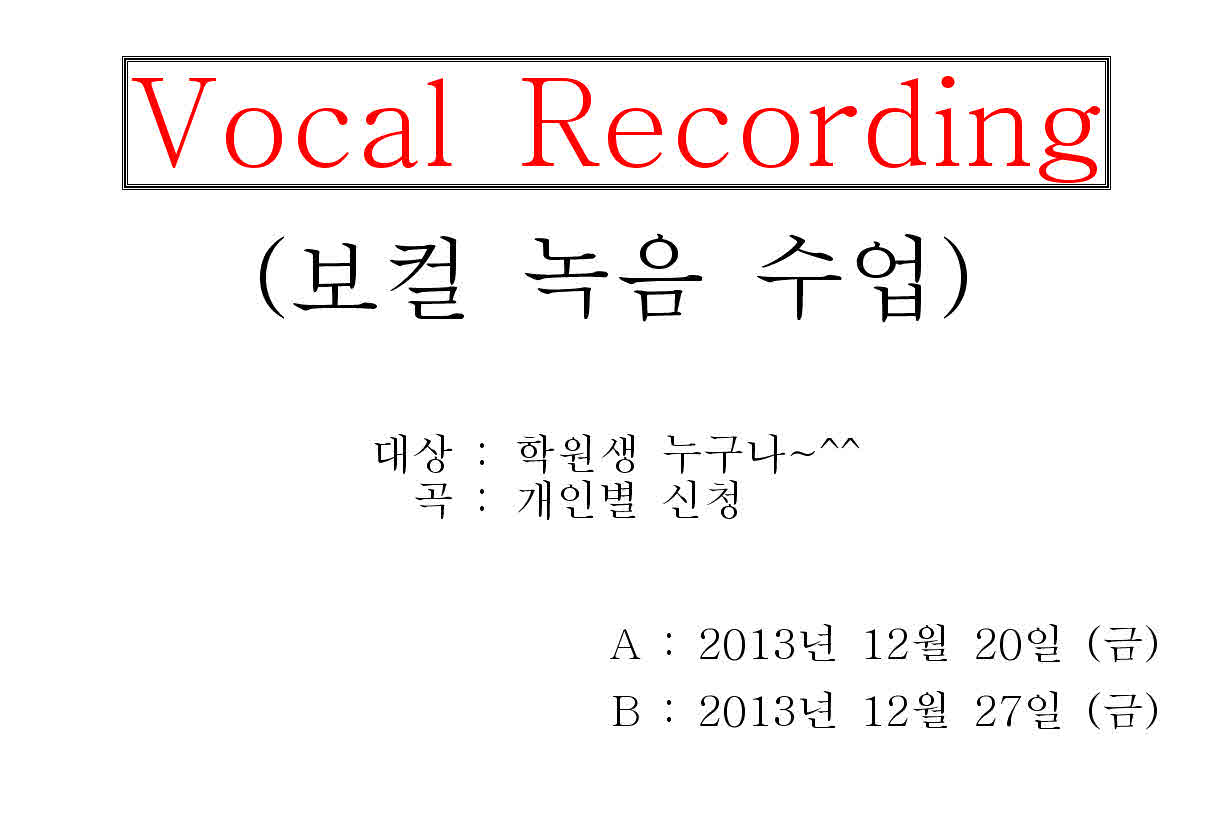 보컬 녹음을 해보고 싶은 학원생 전원을 상대로 진행됩니다.