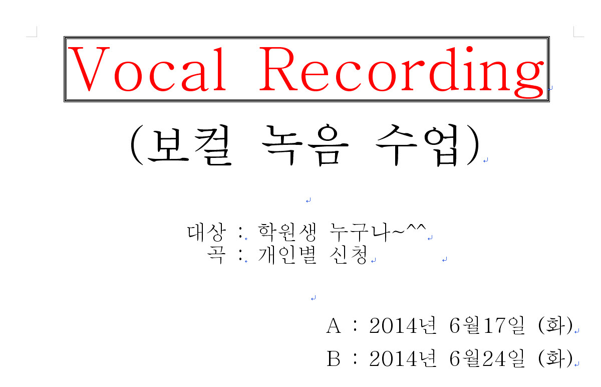 ☆레코딩 수업 일정 안내☆