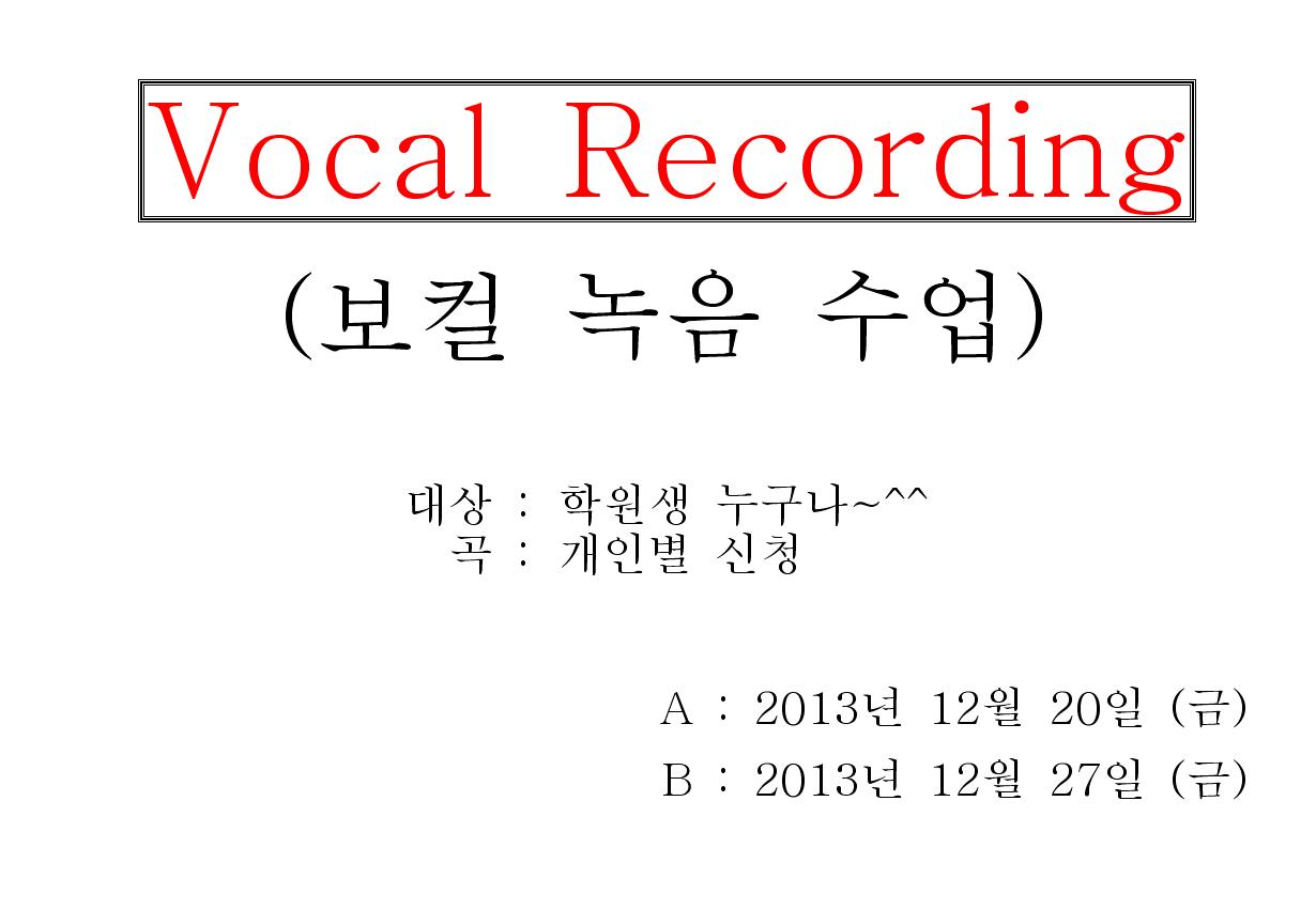 보컬 레코딩 수업에 많은 참여 부탁드립니다.